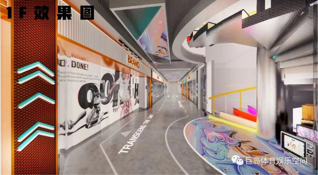 本案之初最大的优势是厂房型空间,最难的主力店在二楼,需要一楼直接到达二楼通道。所以我们建议做一个一楼到二楼的网红楼梯。通过“楼梯”“门”的场景吸引外部消费者的注意。